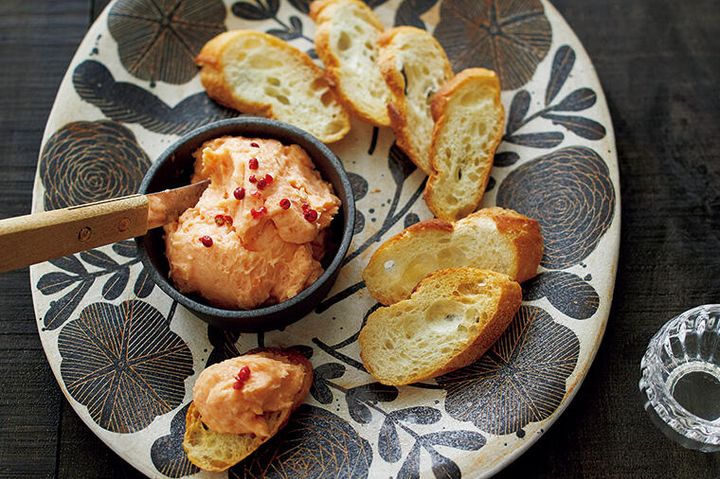 雲のようにふわふわのムースが、舌にのるとすっと溶けて上質なシルクのような口当たりに。たっぷりと加えたバターの風味がたまらない、贅沢なおつまみです。酒肴家として有名な料理研究家の稲垣知子さんに、日本酒がよりおいしくなるバターをきかせたつまみを教えてもらいました。