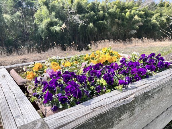 桜並木に沿ってよく手入れされた花壇が設置されたりしています。
