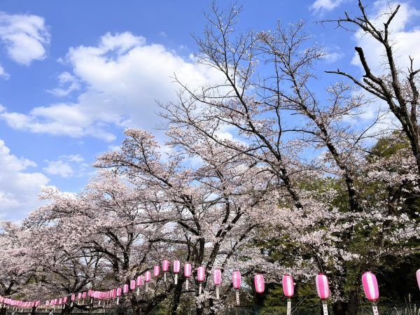 また、桜まつり前後はライトアップも行っているので、夜桜を楽しむこともできます。2024年のライトアップは3月24日(日)から4月7日(日)の18時から21時までとのことです。