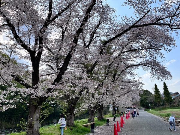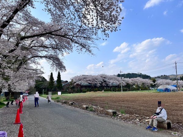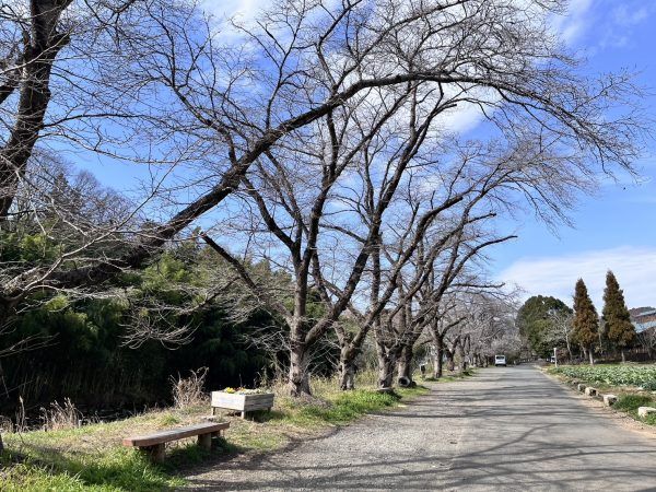 のどかな畑にずらっと続く桜並木♪川の向こう側には竹林もあるので、薄紅色の桜の花がよく映えるんですよね。毎年遠方から見に来る方もたくさんいらっしゃる、お花見スポットなんです^^