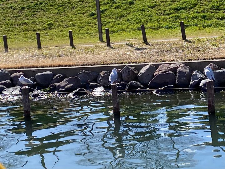鳥は、ユリカモメが並んで日向ぼっこしているところや、カワウが泳いでいるところを観察できました。ガイドさんによると旧中川では、シラサギやアオサギも見ることができるそう。