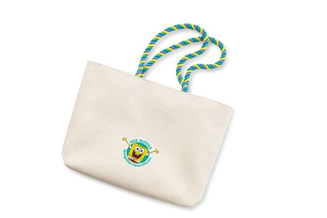 ノートパソコンやA4サイズが余裕で入る大きさのマチがあるトートバッグです。ロープがスポンジ・ボブカラーでかわいいです。しっかりした作りなので通勤通学お出かけに。約W480mm×H310mm×D100mmサイズ。