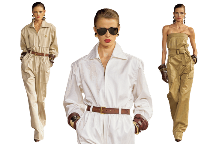 男性社会だった分野で時代を切り開いた女性飛行士たちにインスピレーションを得た今シーズン。ジャンプスーツやボタンダウンのタンクドレスなど、実用性の高いアイテムを洗練されたスタイルで提案したアンソニー・ヴァカレロ。1960年代後半にイヴ・サンローランが発表したサファリルックを彷彿とさせるところもファンにはたまりません。バッグは人気の「イカール」や「ル・トロントセット」が服のムードを反映したアーシーな色や素材でお目見え。ナチュラルでカジュアルな雰囲気を引き締める、バックストラップパンプスやポインテッドトウがシャープなシューズもお見逃しなく。