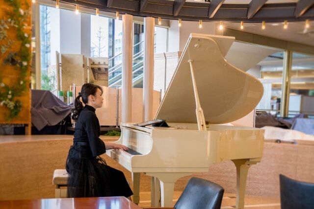 ▲毎週金曜日は午後にピアノの生演奏が行われます。
