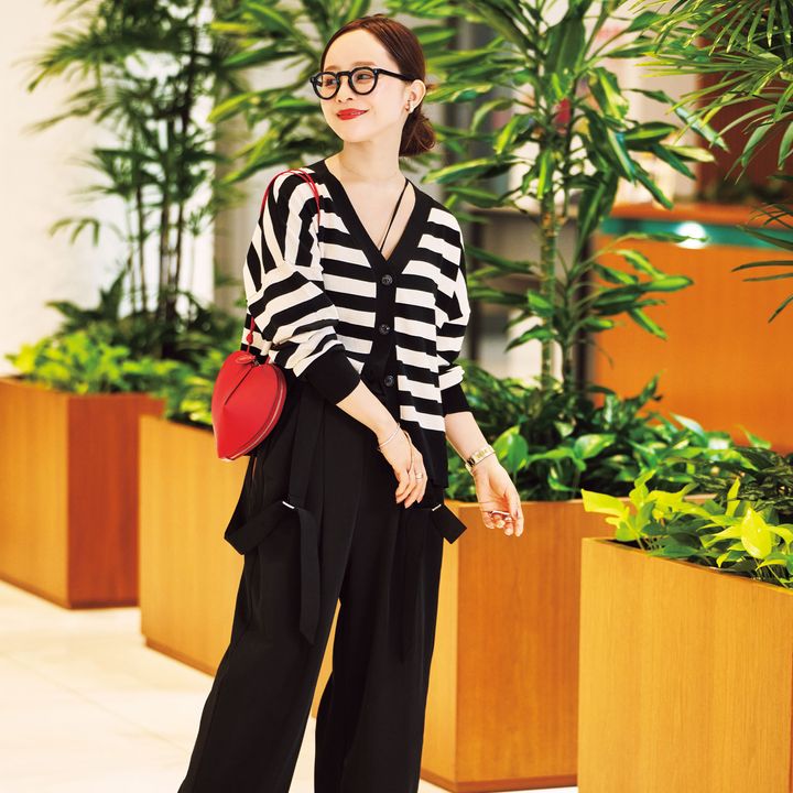 「夫とショッピング」の日はモノトーン×赤リップで差し色