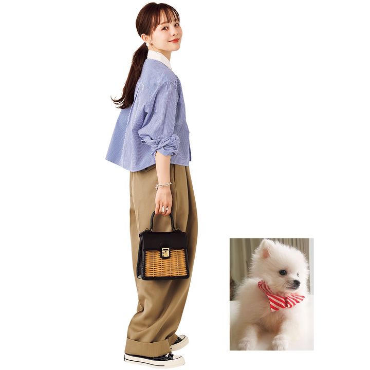 1月、我が家にポメラニアンの赤ちゃんがやってきました!お散歩はカジュアルなコンバースで。メイクも軽めに、リップもシアーな質感で抜け感を出すとバランスピッタリ。