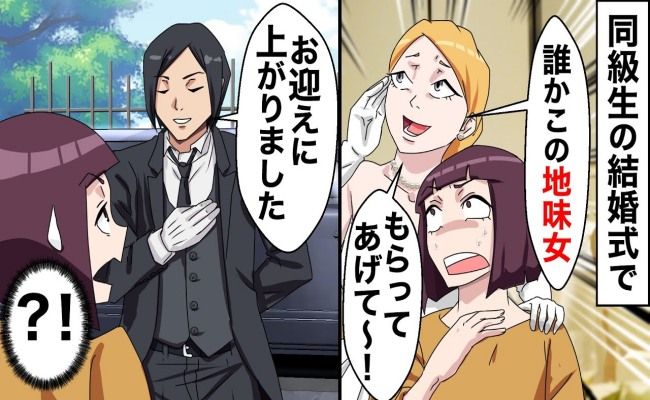 結婚式の場で私を「地味女」呼ばわりする性悪な花嫁⇒1台の高級車から意外な人物が現れ…!?