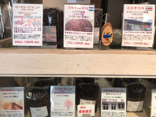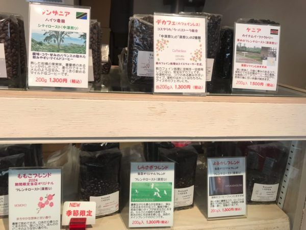 コーヒー豆ひとつひとつ見やすく・わかりやすくポップ紹介もしてくれているので、ポップを読みながらお気に入りのコーヒー豆を選ぶことができます。春にちなんだ季節限定のコーヒー豆も販売されています♡