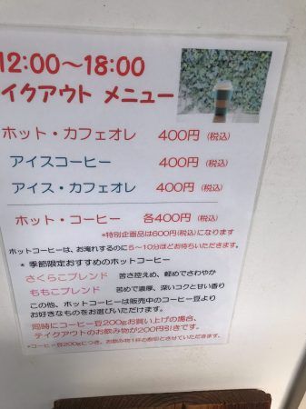 12時から18時までは、喫茶やドリンクのテイクアウト販売も行っており、店員さんが丁寧に淹れてくれるコーヒーやお菓子を召し上がることができます。