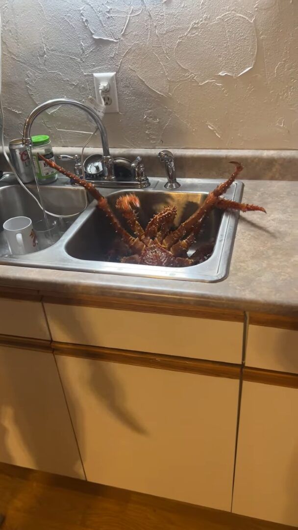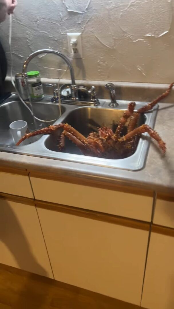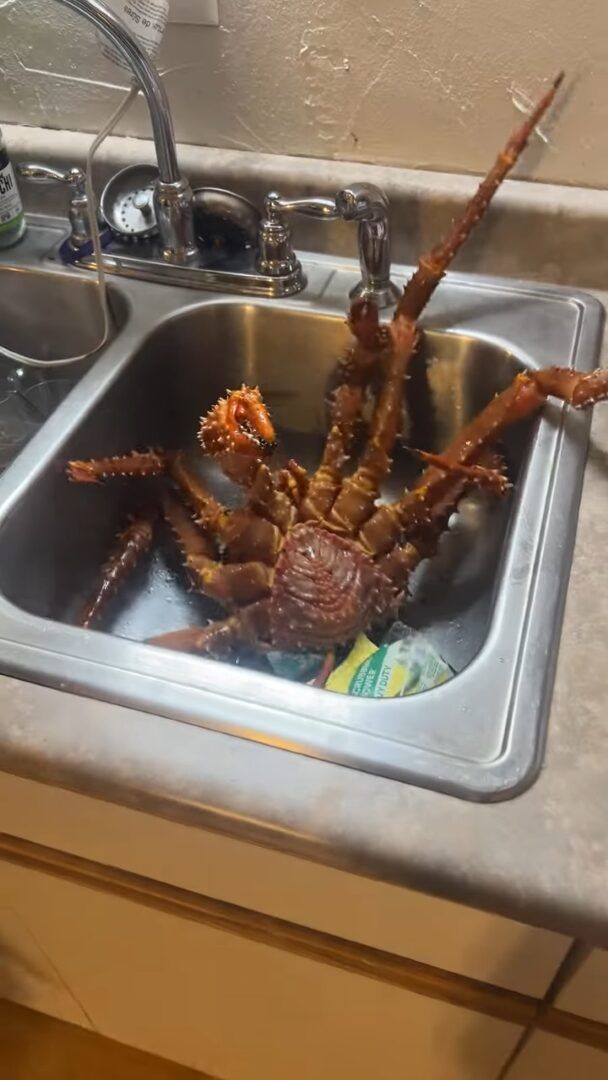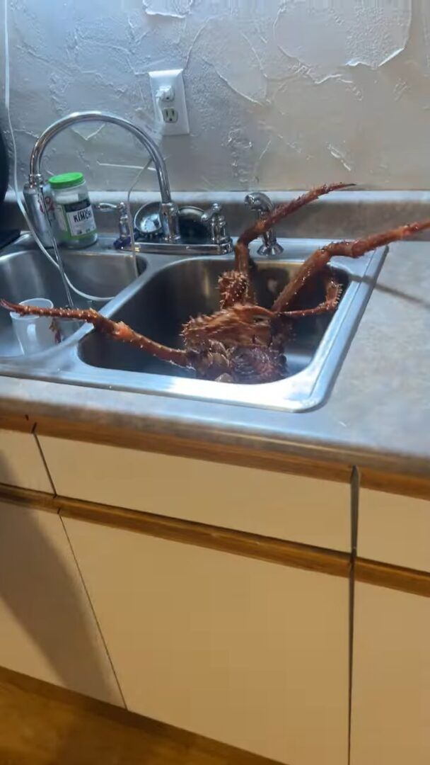 シンクから脱出しようとハサミや脚をジタバタ動かす巨大なカニ。 その動きに、さながら「エイリアン」や「蜘蛛」のようだという声が寄せられていました!!