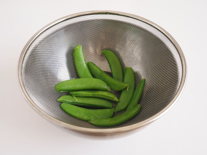スナップえんどうは、筋をとってからボイルする調理法が主流のようですが、中にお湯が入って水っぽくなりがちです。