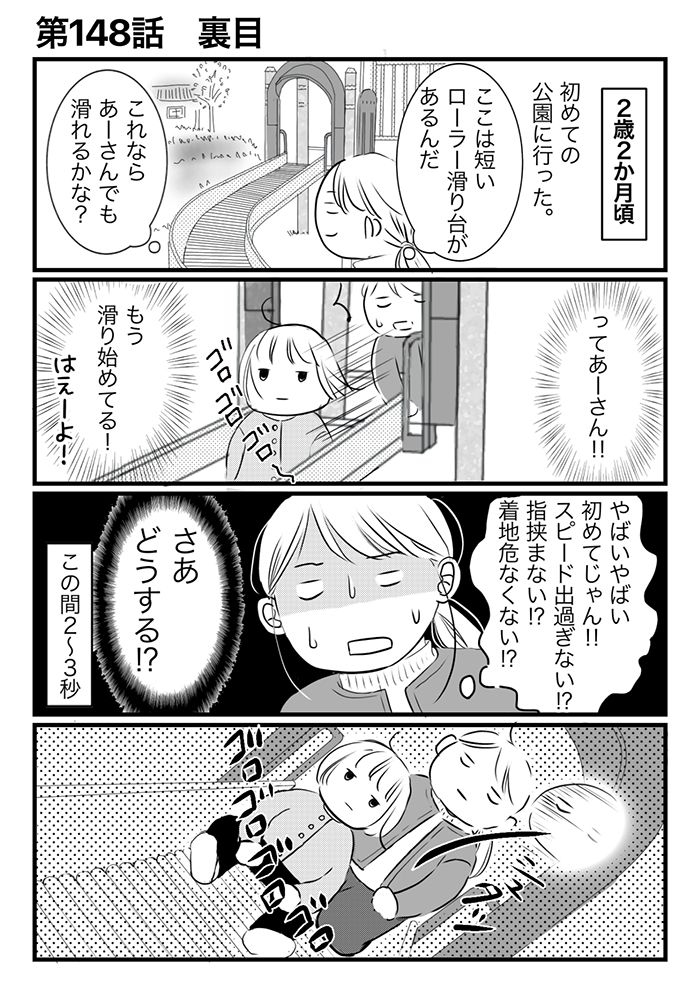 3. 初めて行った公園にあったローラー滑り台。娘が心配で、つい一緒に乗ってしまって…、どうする!?【新米ママ奮闘日記・51】