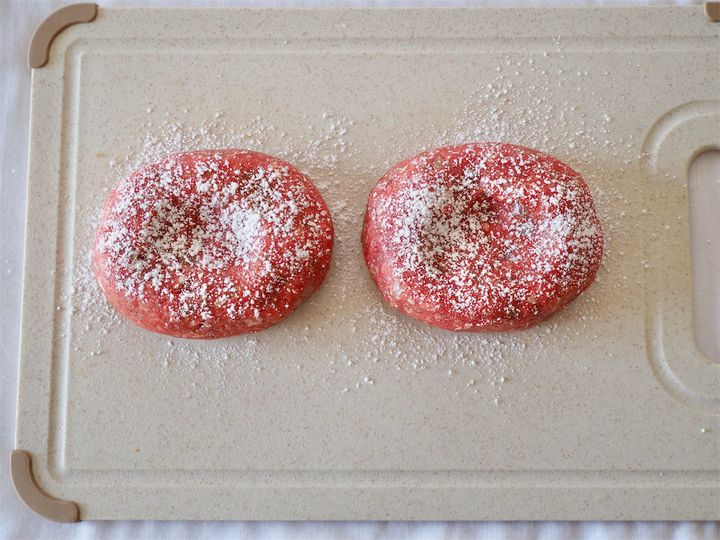 4.150gを手に取り楕円状に成形し、中心に指3本ほどのくぼみを作る。