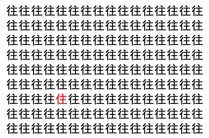 【脳トレ】「往」の中に紛れて1つ違う文字がある!?あなたは何秒で探し出せるかな??【違う文字を探せ!】