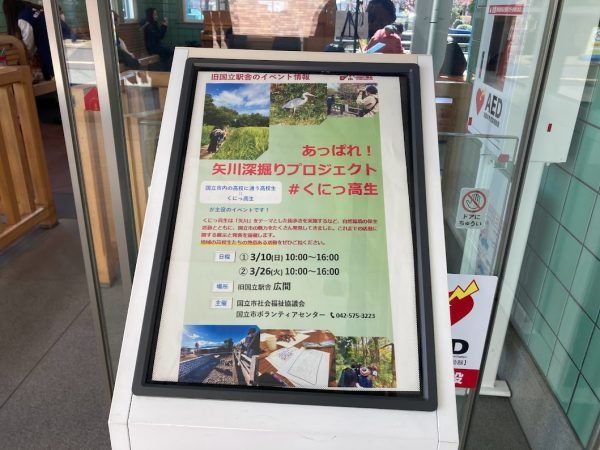 次の矢川深堀りプロジェクトイベントは3/26 (火)。時間は10時から16時。旧国立駅舎広間で行われます。
