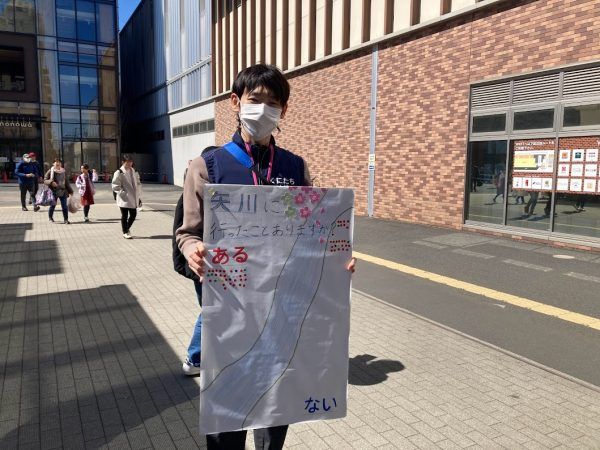 回答をくださった国立市ボランティアセンターの野澤さんも、高校生たちと一緒にチラシを配り、「矢川」のことを多くの方に知ってもらう活動を行っていらっしゃいました。