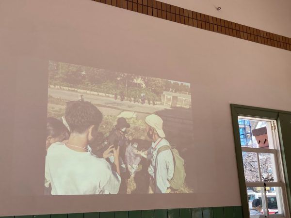 旧駅舎の壁ではプロジェクターから活動の映像も流れていました。