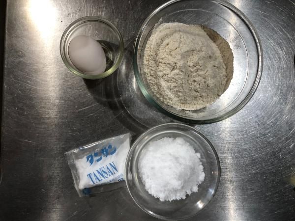 薄力粉…125g 重曹……小さじ1/2 卵………1個 砂糖(三温糖)…100g みりん…少々
