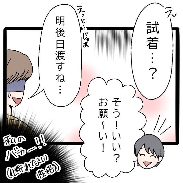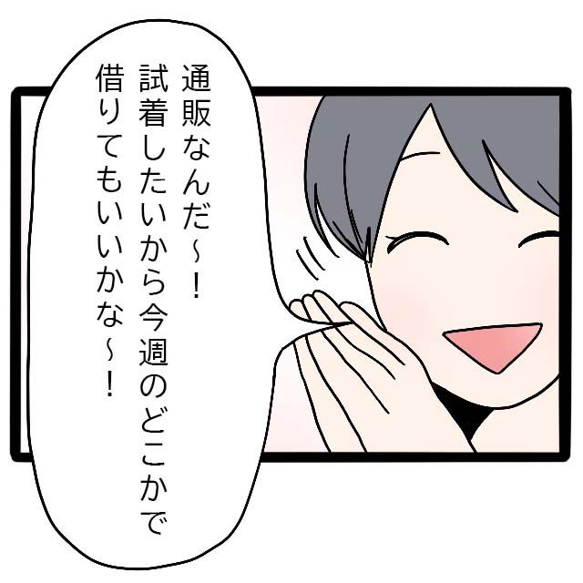 ところが、その日はいつもと返答が違い、「通販なんだ~!試着したいから今週のどっかで借りてもいいかな~!」と返事が・・・!