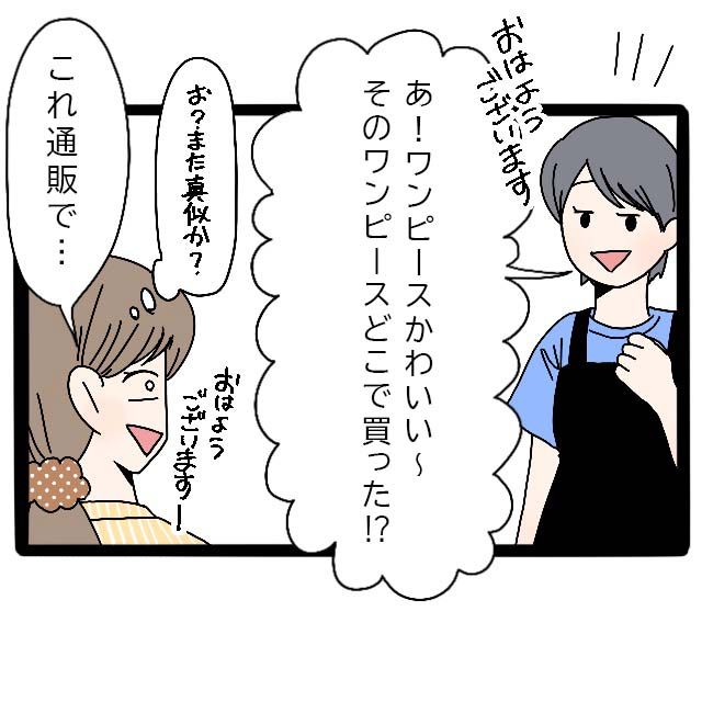 とある朝、「ワンピースかわいい~!どこで買った?」と質問してきたユミママ。