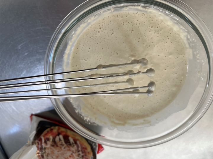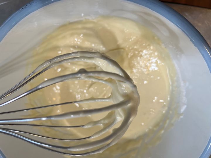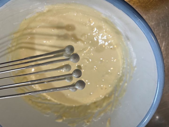 ぼってりして重みのあるテクスチャーですが、この泡立て器なら必要以上に絡みつきません。