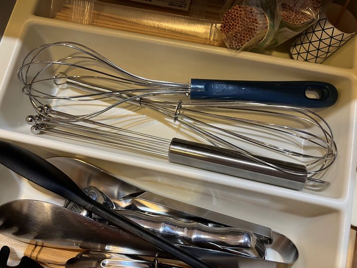 生クリームのホイップは電動のハンディフードプロセッサーに頼りきっている私ですが、卵を溶きほぐしたり、粉もの生地の材料を混ぜたりするのに泡立て器は欠かせません。じつはすでに2本持っていましたが……もう1本増やしてしまいました。