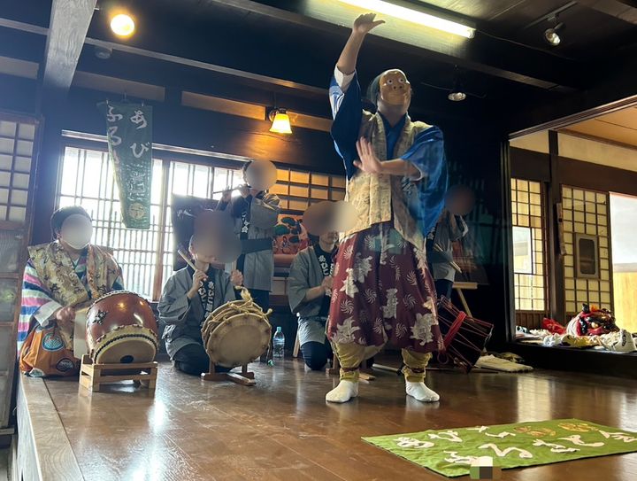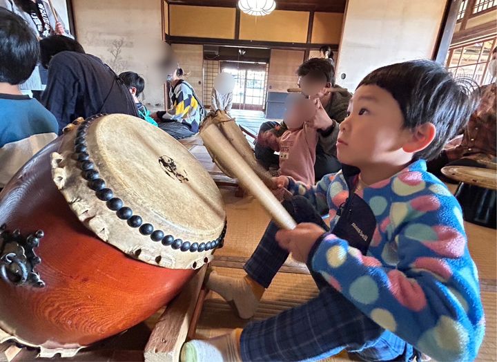 江戸時代に建てられた住宅で昔の雰囲気を味わいながら、地域の子どもたちと和太鼓の演奏やひょっとこ踊りを体験してきました。(許可をもらって撮影しております。)