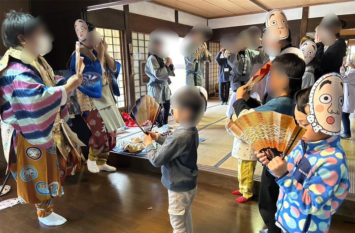 子どもたちは、ひょっとこの愉快な表情にくぎ付けになっていました。