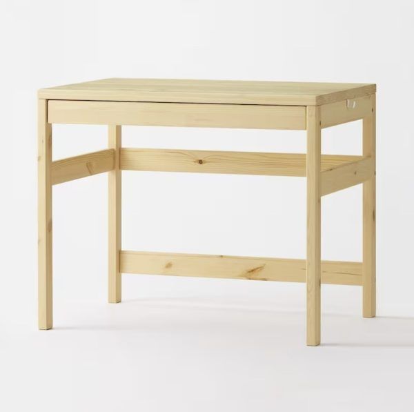 木の質感が人気のパイン材デスク。大きすぎず小さすぎない、ちょうどいいサイズ感で引き出しがついたシンプルなデザインが人気です。無印良品のパイン材の家具などと合わせてもいいですね。