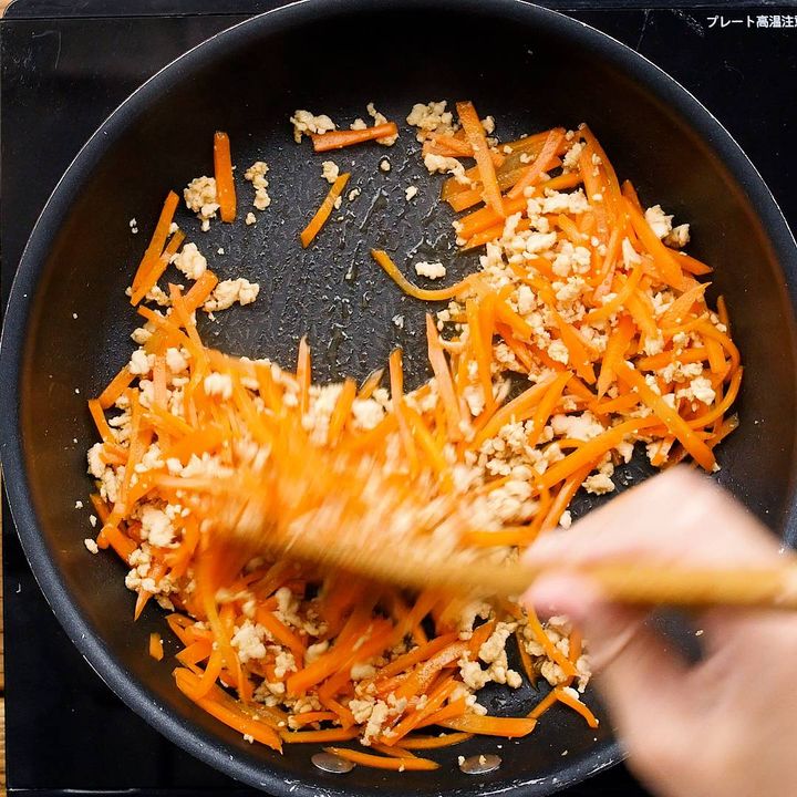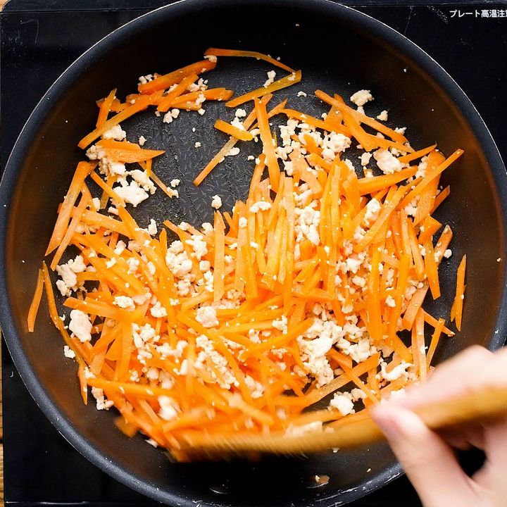 3. そぼろ入りのボリュームおかず!鶏そぼろのにんじんしりしり