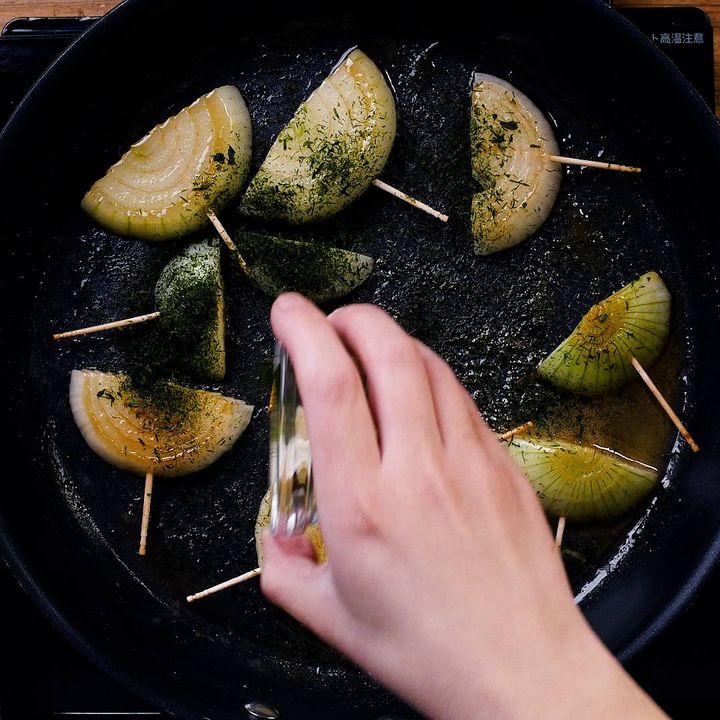 3. 新玉ねぎの甘みがたまらない…。新玉ねぎの青のりバタぽん焼き