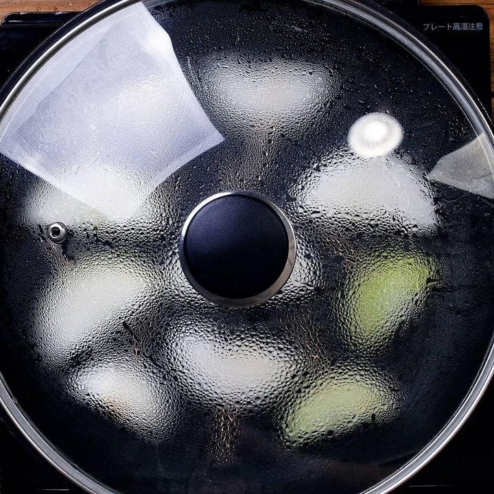 3: フライパンにサラダ油を引き中火で熱し、新玉ねぎを並べて塩をふります。フタをして焼き色がつくまで3〜4分ほど焼きます。