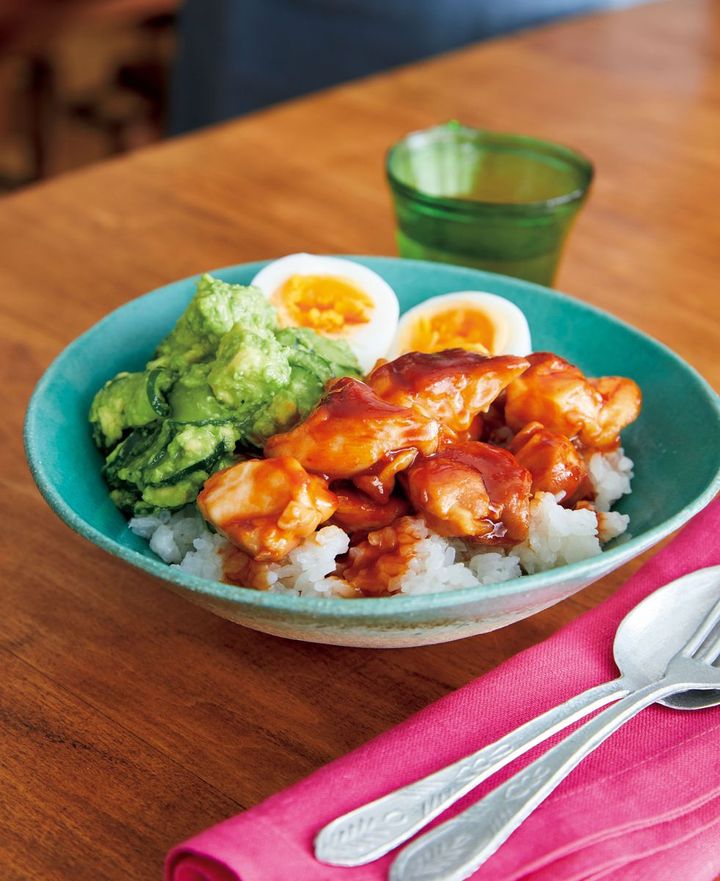 外食ばかりもしていられないし、手軽で子どもが喜ぶランチを作りたい! そんなあなたへ、照り照りのチキンがたまらない『アボカドきゅうりのチキンロコモコ』をご紹介。甘みとこくのあるソースは、子どもウケ最強! たんぱく質がたっぷりとれる一皿ごはんです。