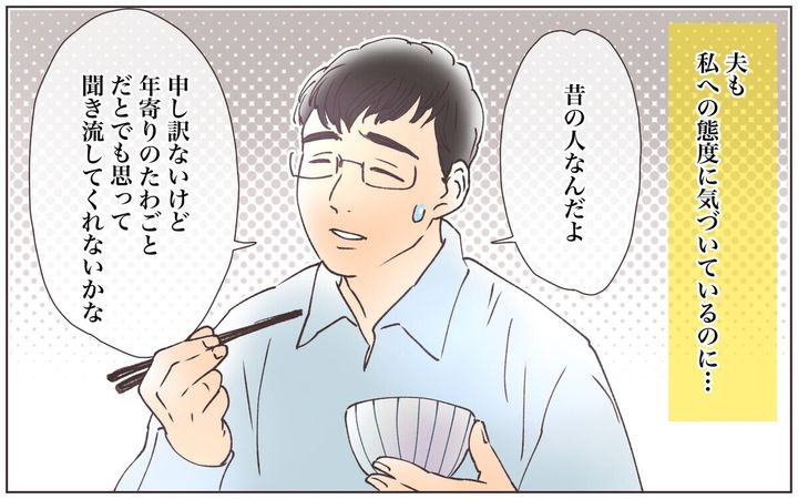 ・親と揉めたくないという気持ちはわかるけど、この夫の様子はありえないなと思いました。妻を執拗に傷つけようとしてきたり、娘の髪の毛を勝手に切ったり、行動に口出ししてている時点で異常ですし、聞き流せないレベルだと思います。