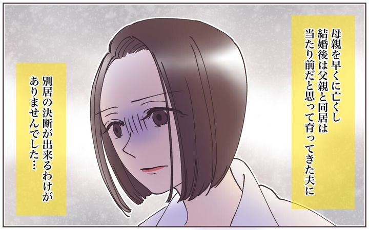 優斗の母親が早くに亡くなっていることもあり、夏希は義父と同居することに。すると義父は「実家のしつけがなってない」などと夏希を攻撃するようになっていったのです。