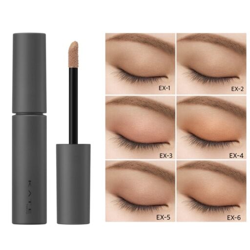 ▲ケイト マットラテリキッドシャドウ 全6色 各¥1,650(税込、編集部調べ) ※数量限定 / EX-1 ミルクベージュ系(執事の休息ミルクティー)、EX-2 ホワイトピンク系(秘密記念日の白桃シェイク)、EX-3 コーラルベージュ系(真夜中のご褒美のロゼ・ミルクセーキ)、EX-4 オレンジベージュ系(自分に甘めのメイプルミルク)、EX-5 ミルクブラウン系(雨宿りのミルクココア)、EX-6 オレンジブラウン系(読書の傍らシナモンチャイ)