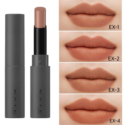 ▲ケイト スチームマットヌードリップ 全4色 各¥1,650円(税込、編集部調べ) ※数量限定 / EX-1 ホワイトピンク系(満月桜のホワイトモカ)、EX-2 ピンクベージュ系(半月チェリーのカプチーノ)、EX-3 ピンクブラウン系(新月ノエスプレッソ)、EX-4 オレンジベージュ系(月無夜のオレンジマキアート)