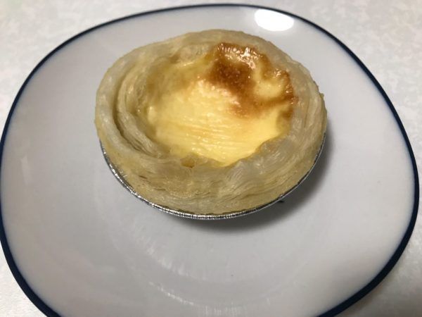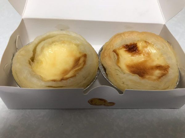 エッグタルトは注文してから作ってくれるため、出来上がるまで店内で待たせていただきました。20分前後かかります。出来上がるまで甘い匂いが店内に広がっていました。 2個入りで550円でした。出来たてをいただきました!!