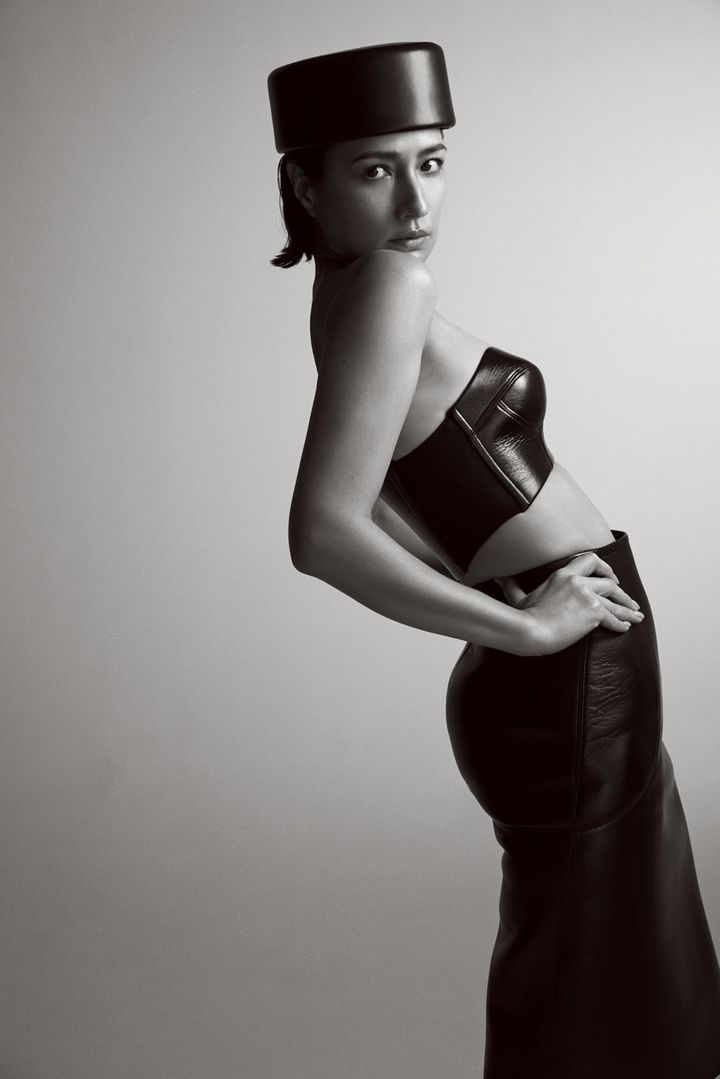 「ボディコンシャスでフェミニンだけれど、レザー素材なので強さを感じます。真由美がもつ、モードで自立した女性のイメージが、そのまま投影されています」