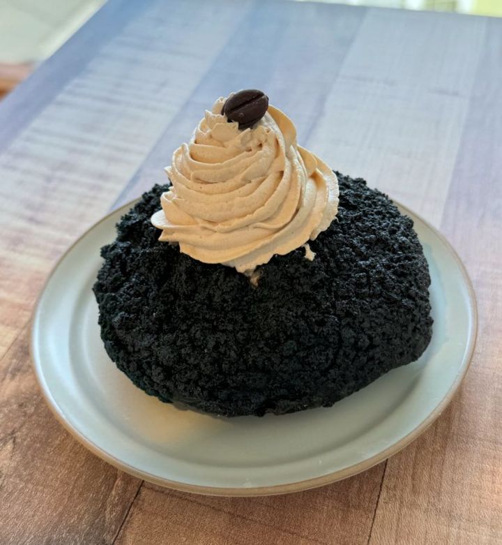 取材時(2024年2月)は、中からチーズが溶け出す「ブラックココア/チーズ」500円や、カスタードクリームが詰まった「チョコカスタード」500円、「ブラックココア/紫芋生クリーム」550円など全10種類の中から、スタッフさんイチ押しの「ブラックココア/コーヒー生クリーム」を注文しました。