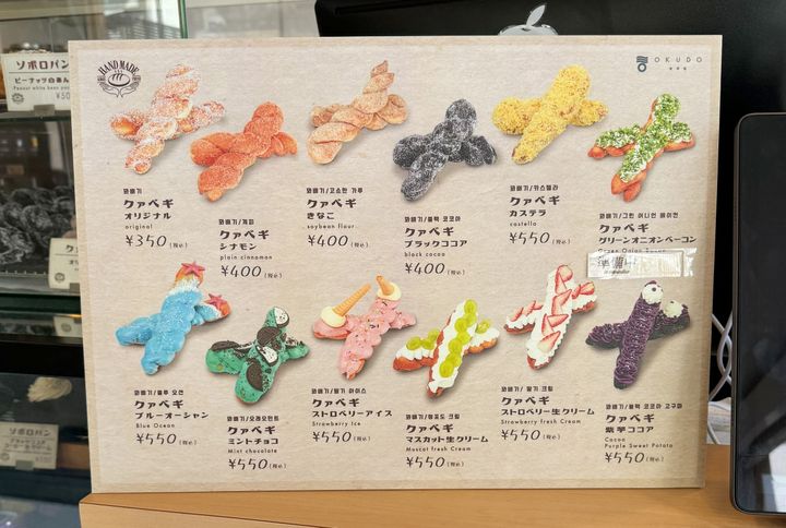 「クァベギ」はシンプルに生地のおいしさを楽しむ「オリジナル」350円や「シナモン」400円をはじめ全12種類がラインアップ。