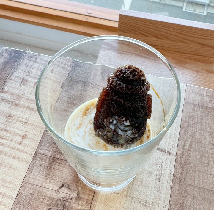 「ハルバンラテ」は、済州島の石像“トルハルバン”型のアイスをミルクで溶かしながら味わう、ちょっとシュールなドリンクです。
