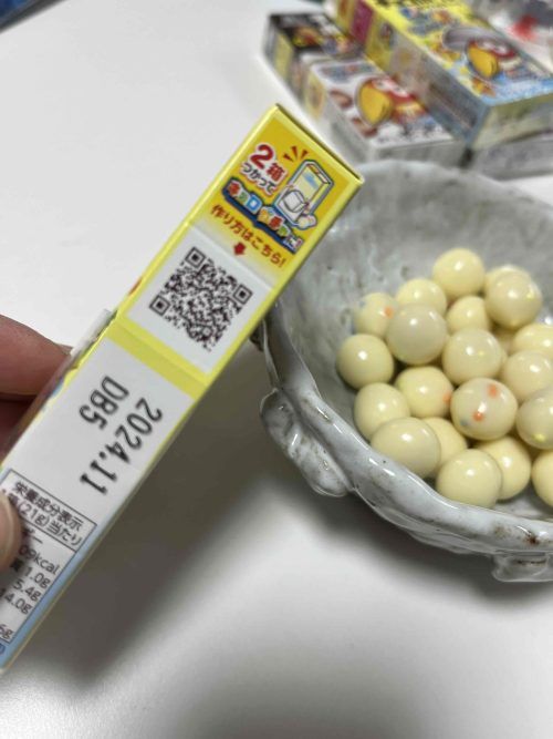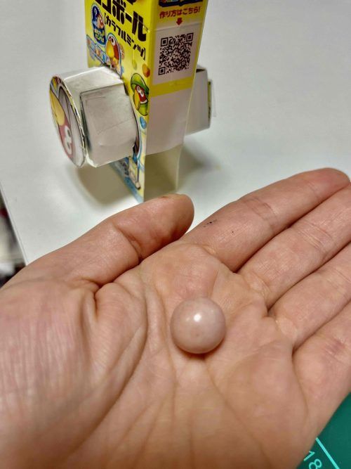 出来たのを見せてもらったところ、「チョコボールのガチャ」でした!!