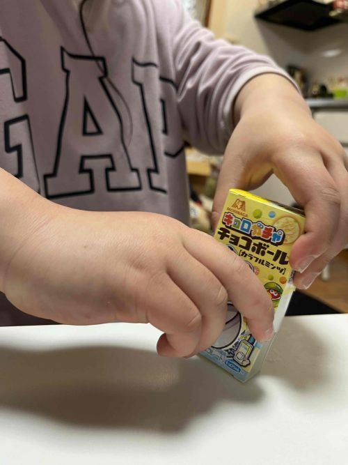 この前、家族でスーパーに出掛けおやつにチョコボールを買ったのですが、家に帰ってきて長男がチョコボールを見て何かを作っており…