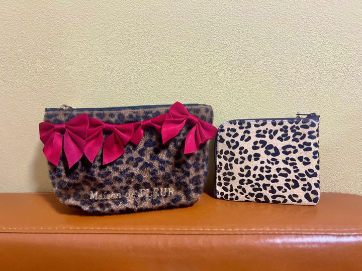 (ミニひょう柄ポーチは先輩からいただいたため、ブランド名がわからずでした><)
