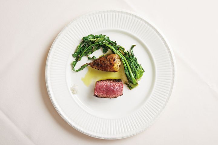 精肉店と二人三脚でうまい肉を届ける。 魚料理を得意とした高橋直史シェフだが、肉卸の〈サカエヤ〉が仕上げる熟成肉と出会って以来、肉焼きに開眼。肉好きが集まる店に。