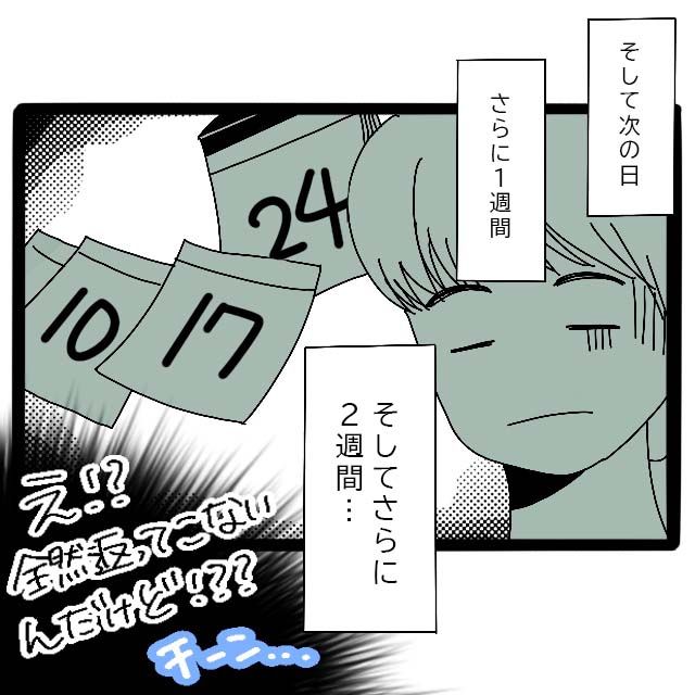 次の日、さらに1週間、そしてさらに2週間、全く返ってくる様子がなく・・・