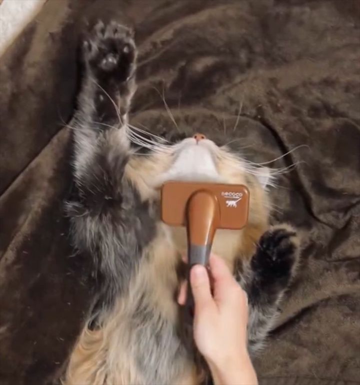 伸ばしたアンテナがたまにピコピコ・・ブラッシング中の猫の姿に「信頼して委ねてますね」