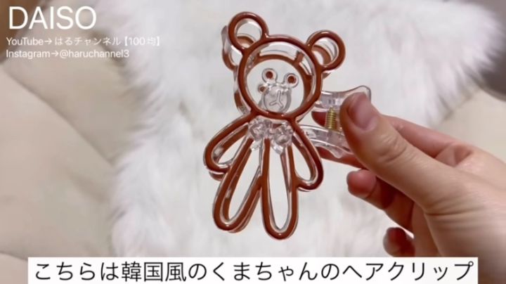 韓国風にデザインされた、くまのキャラクターのヘアクリップ。