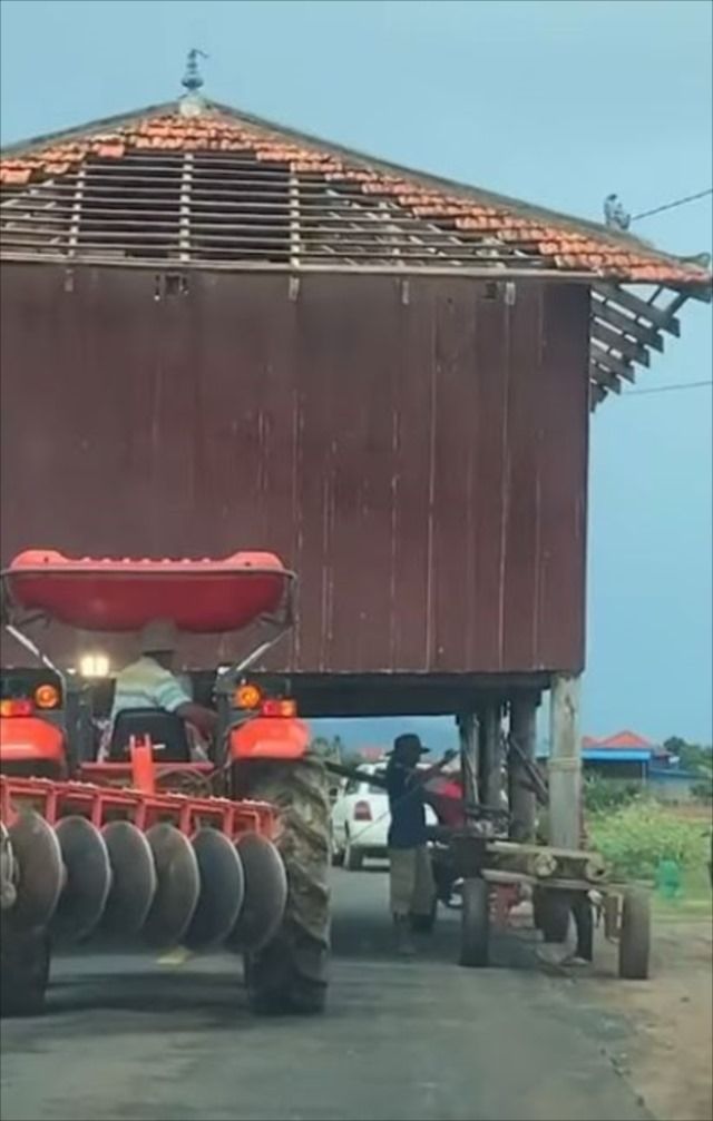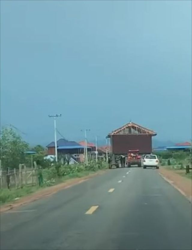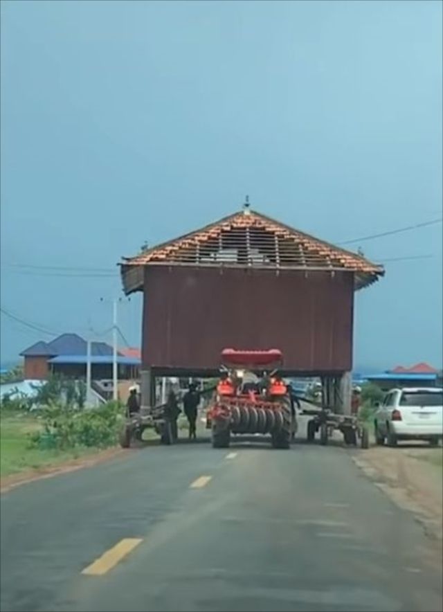 しかし、よく見てみると・・・トラクターが乗せているものはトンデモナイ大きさですよね!?屋根らしき形も見えますし、まさか家を運んでいるわけじゃないよな!?と目をこすってしまいますが・・・どう見ても家ですよね!?